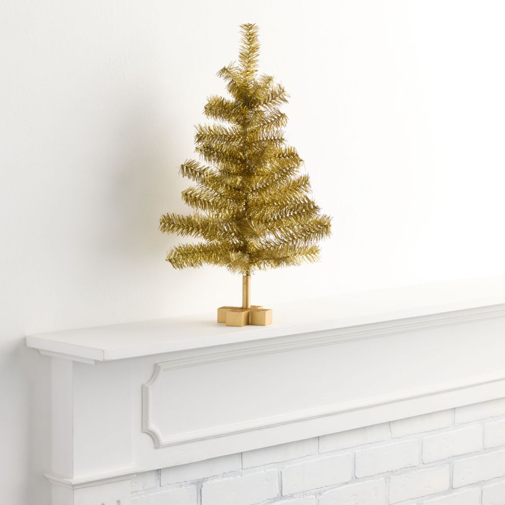 12. Antique Gold Tinsel Christmas Tree Décor