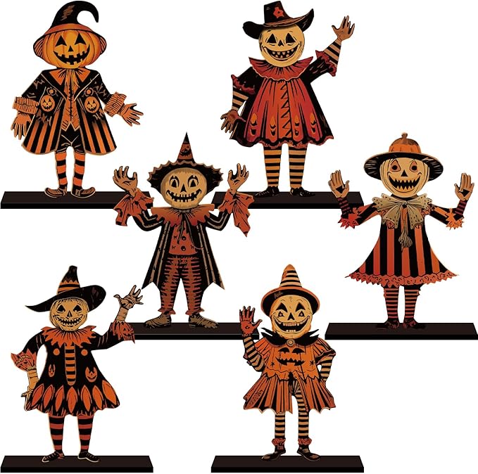 These cheerful scarecrows provide harvest-meets-Halloween spirit to your table. They make a classic centerpiece or a subtle vintage touch on a buffet.